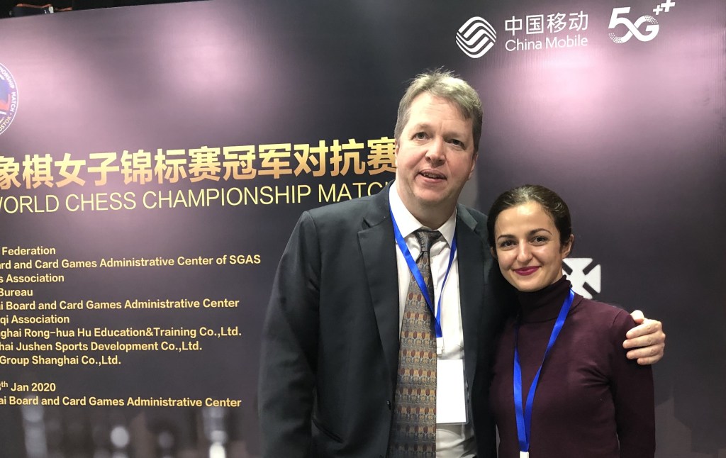 Turan with grandmaster Nigel Short at a Shanghai Tournament